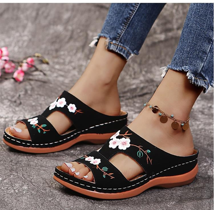 Plongez dans un jardin de style avec notre magnifique sandale florée pour femme. Les délicates fleurs ornent élégamment la partie supérieure, ajoutant une touche de féminité et de fraîcheur à votre tenue estivale. Confortable et légère, cette sandale vous offre non seulement un look chic, mais aussi une agréable sensation de douceur sous vos pieds.